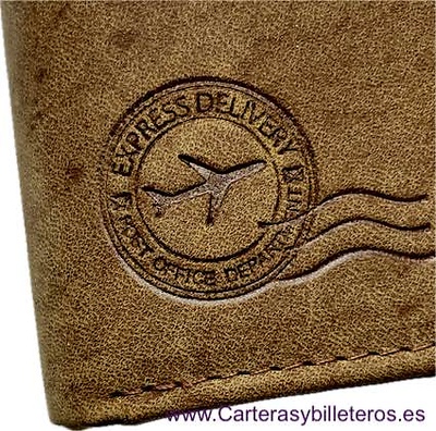 • CARTERA BILLETERA DE HOMBRE EN PIEL NATURE CON MONEDERO y 14 TARJETAS CUERO